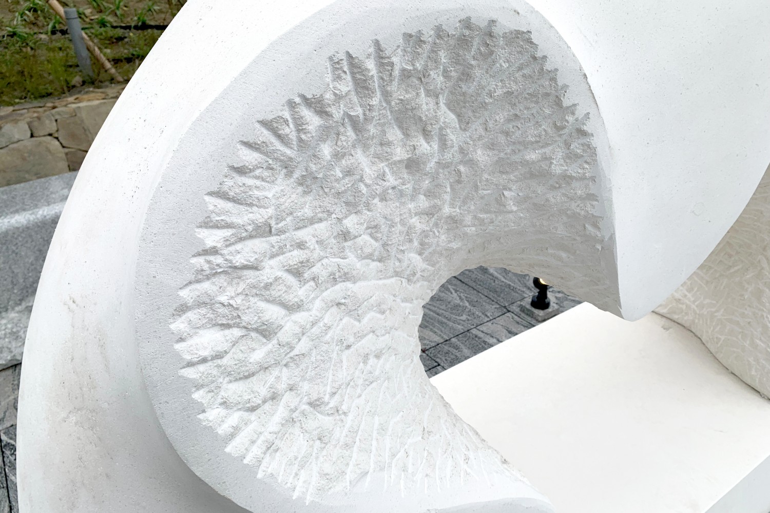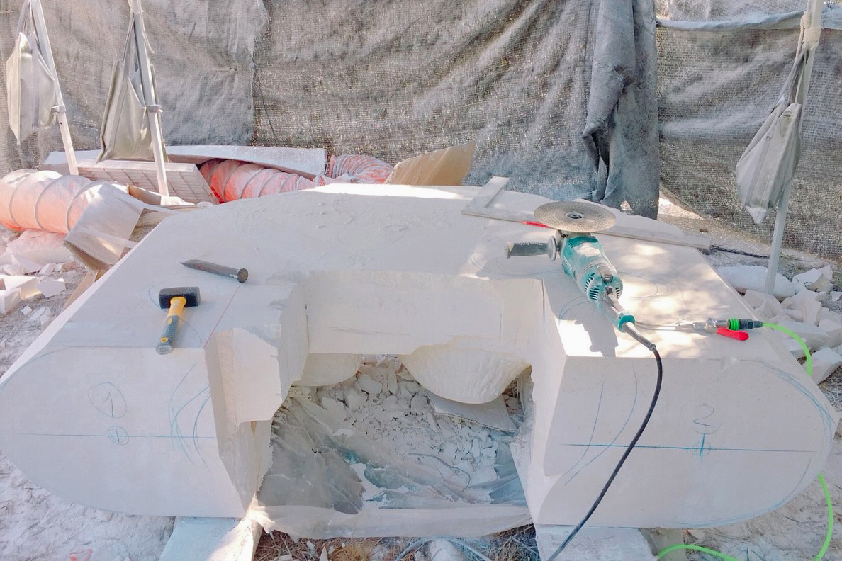 將粗曠的石面,研磨成一座自然圓弧的立體雕塑,