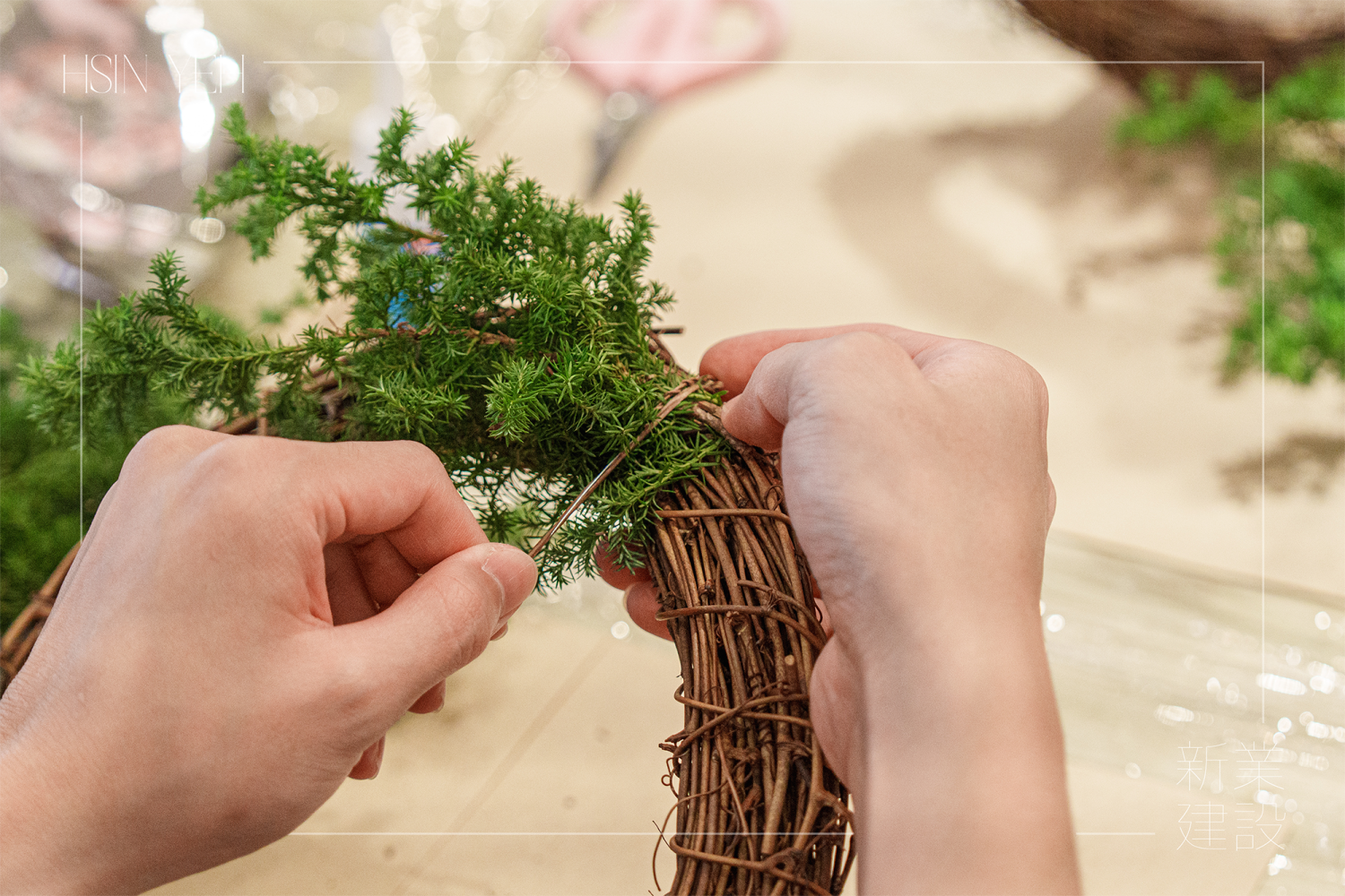 編一只聖誕 – 手綁花圈